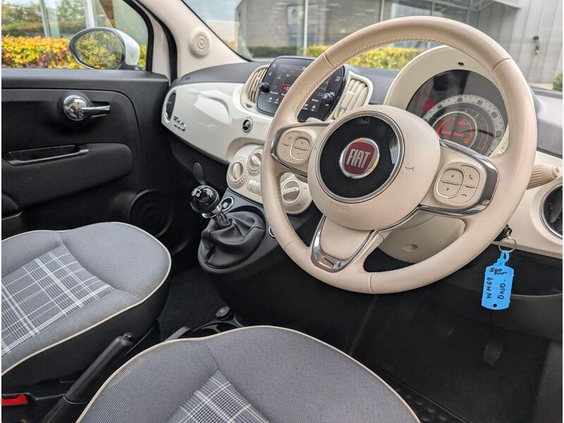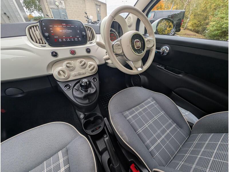 ******Awaiting prep and Photographs/Stock just arrived******** This one-owner Fiat 500 Lounge is a superb example , clean inside and out and finished in the desirable pearlescent white with classic tartan seats. It comes with two keys, a full service history, warranty, and finance options available. The Lounge trim adds a touch of sophistication, featuring 15-inch alloy wheels, a fixed glass roof with sunblind, and chrome exterior detailing for that iconic 500 look. Inside, you’ll find a 5-inch touchscreen with DAB radio, Bluetooth, USB and AUX connectivity, air conditioning, and a leather multifunction steering wheel. Safety and convenience are well covered too, with rear parking sensors, cruise control, and LED daytime running lights. A great-looking, well-cared-for Fiat 500 that’s ready to drive away and enjoy.Specification